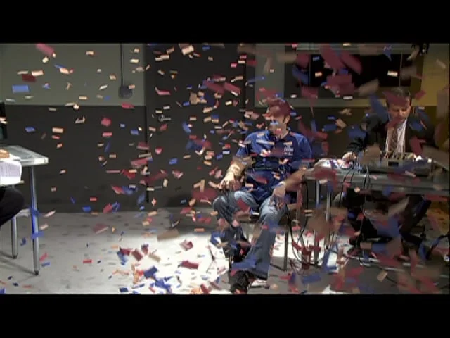 Stewart sat strapped into a chair within the confines of a strategically lit interrogation room setting. Suspenseful theme music, a la Who Wants to be a Millionairre, added dramatic flair to the event.